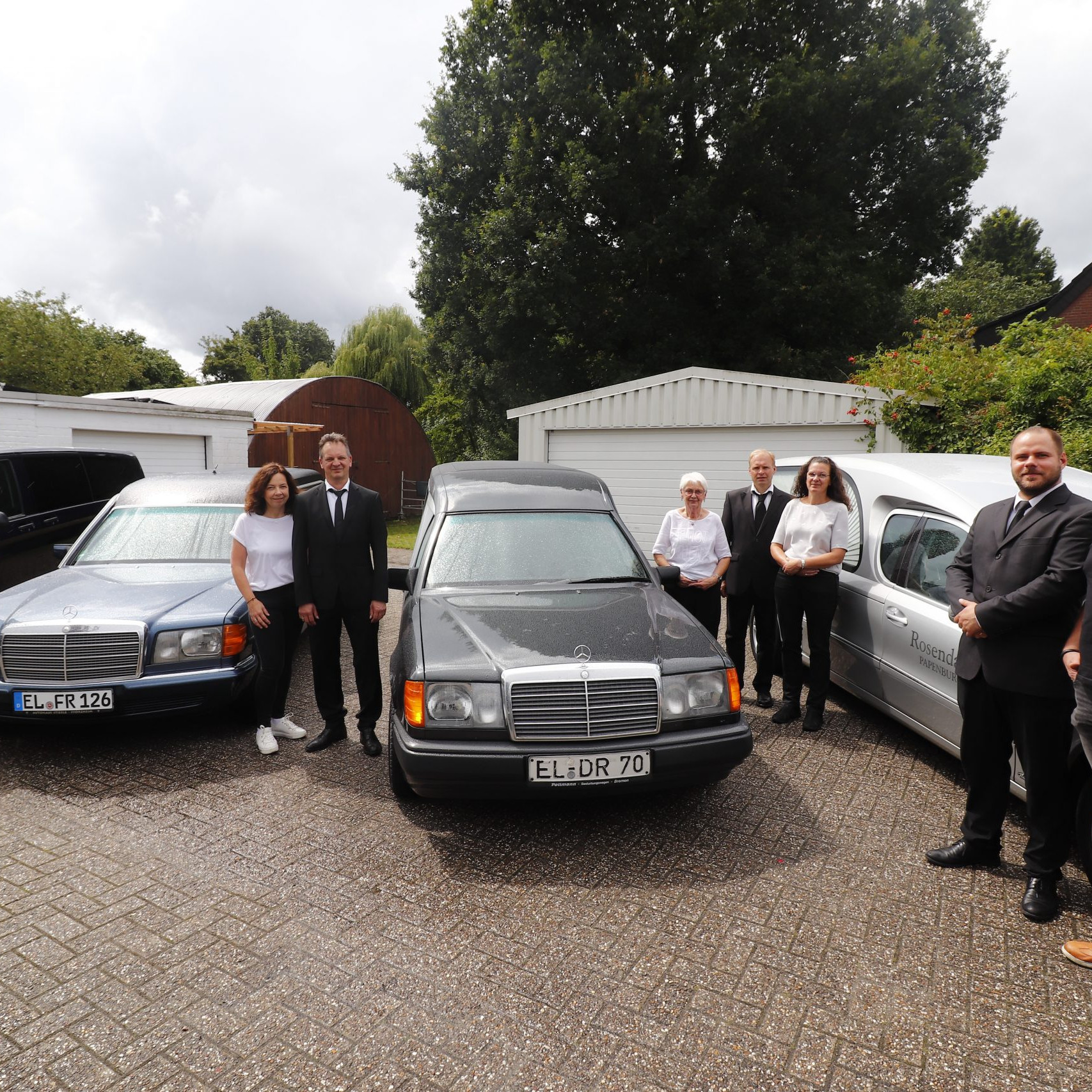 Im Herbst 1965 begann auch die KfZ Geschichte des Beerdigungsinstitutes Rosendahl. Bis dahin wurde ein Anhänger für die Überführungen der Verstorbenen benutzt. So kaufte die Firma einen Hanomag Kastenwagen, schwarz gespritzt mit Scheiben, die mit Palmenwedeln verziert wurden. Der erste richtige Bestattungswagen wurden 1968 angeschafft: ein Modell Opel- Caravan, nach DIN 71085 umgebaut. Der Hanomag diente danach überwiegend zum Transport des Dekorationsmaterials. 1977 wurde der Opel durch einen Ford Granada-Turnier ersetzt, 1988 wurde ein Mercedes T-Modell angeschafft. 2003 wurde der Fuhrpark durch ein neues Bestattungsfahrzeug, ebenfalls ein Mercedes, erweitert. Somit hat das Institut nun 2 Bestattungsfahrzeuge im Einsatz und kann noch flexibler reagieren.